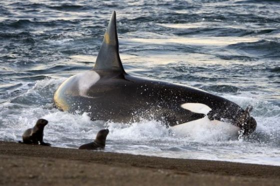 Killer Whales Hunt Seal lions on Beach